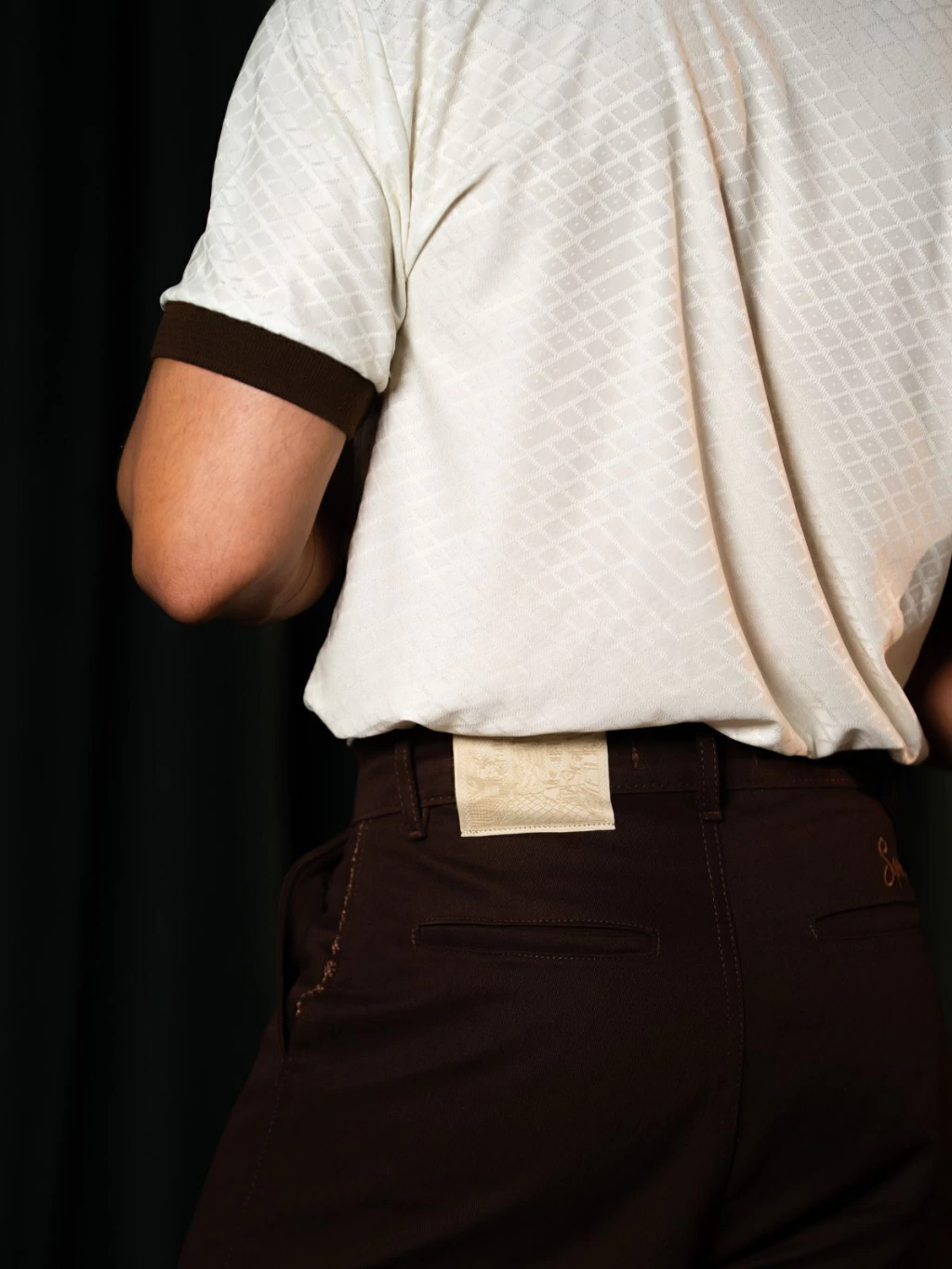 A gola marrom e os punhos retilíneos criam um contraste inspirado nas camisas de time vintage, mas aqui o jogo é outro. É sobre celebrar nossa casa latino americana e o calor que une quem veste Sopro.